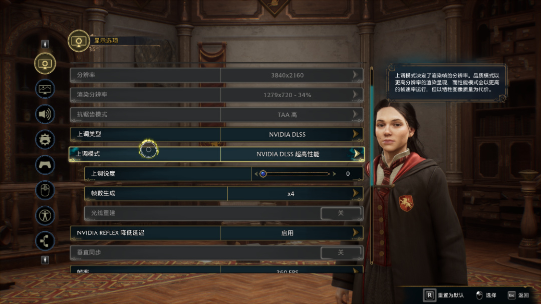 《霍格沃茲之遺》實際遊玩體驗,將畫質設爲超高,4K分辨率下,開啓原生DLAA時,遊戲實際幀率爲60FPS左右,開啓DLSS 2.0後,遊戲實際幀率爲110FPS左右,開啓DLSS幀生成,並將生成倍率設爲2X,遊戲實際幀率爲190FPS左右,將生成倍率設爲3X,遊戲實際幀率爲250FPS左右,將生成倍率設爲4X,遊戲實際幀率爲290FPS左右;