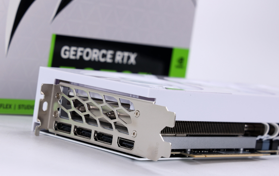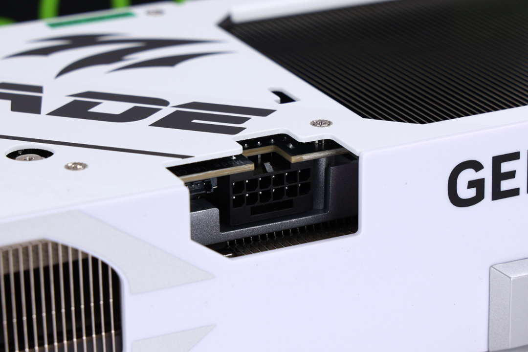 反扣設計的12V-2x6供電接口,位於顯卡側面中部,符合ATX3.1/PCI-E 5.0規範,支持最高450W的輸出功率。