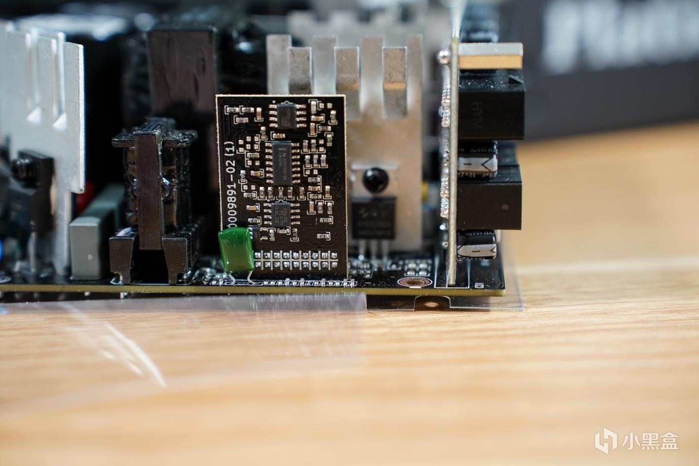 電源的+5V與+3.3V採用DC-DC設計,配置有2個開放式線圈電感與固態電容,小板的對面則是線路。面對的有接口的立着的小板是控制風扇和彈塵開關的。