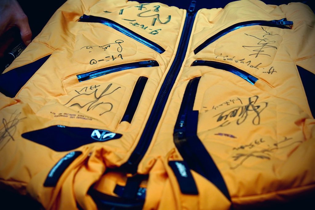 之前的忽那汐裏和小林優,殺青時也在ACRONYM制服上簽名。