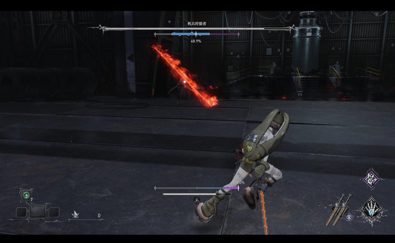 对了,在Demo结束时,游戏还提供了一个Boss连战模式,在这个模式中,玩家可以一窥游戏的多种兵刃以及时装。并与机兵狩猎者进行一场对决,机兵狩猎者也有着和玩家一样的同步率系统,无论从游戏性还是故事性上来说,这么设计都挺有趣的。