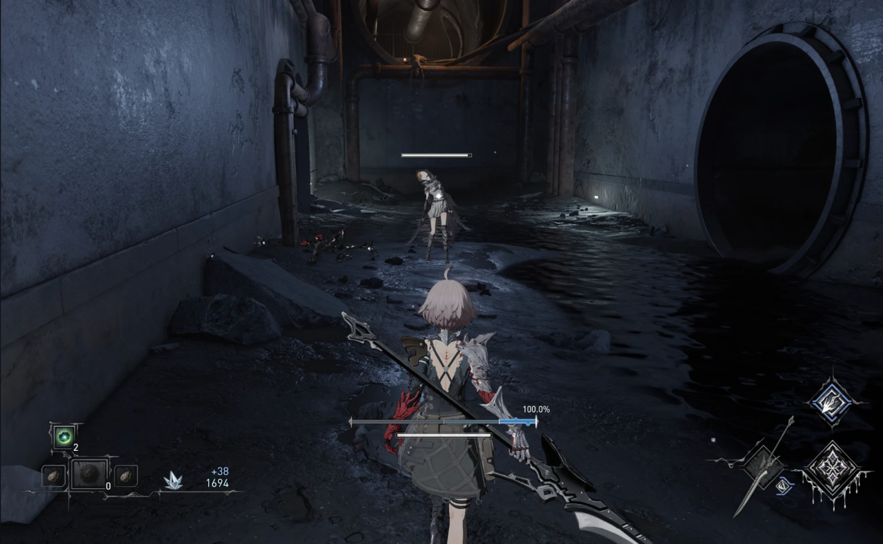 《无限机兵》也有亮点,继承了魂系的传统。那就是无论是小怪还是精英怪,它们的数值设定都是刚刚好的。比如小怪一般都是2~3刀就能砍死,人物动作毫不拖泥带水,敌人行动规律也好摸。精英动作更丰富一些,可以多挨几刀。