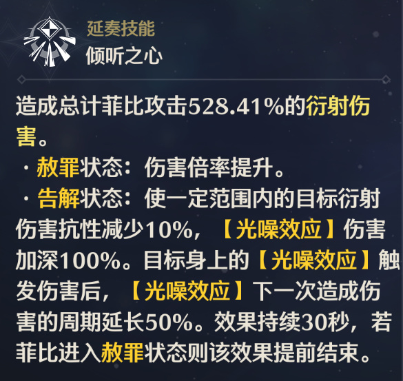 可能你要說菲比不是主c嗎,非也,菲比真正的強度全在副c形態,作爲你遊第一個雙形態和異常效應體系角色,主c形態輸出水平只能說一般,但是其副c形態輔助能力很強,不僅是標準的傷害加深的延奏模板,而且擁有高效的光噪效應掛載效率,以及技能時停效果,還有大世界很好用的空中重擊模組(小櫻是你嗎),以及!你遊目前最最最可口的白絲!好想和菲比信教啊啊啊啊。