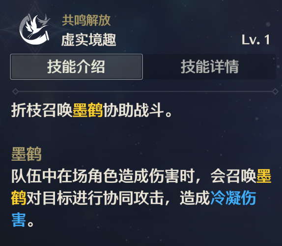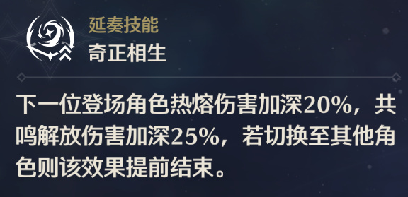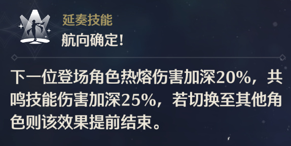 20%冷凝傷害加深,25%共鳴技能加深,附帶協同攻擊,以及給下一位登場角色回覆共鳴解放能量,還有香香軟軟滑滑膩膩的白絲。