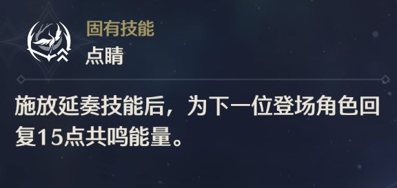 很明顯,無論是協同攻擊可以轉火不用擔心怪物刷新,還是給下一位登場角色回覆能量(雖然感覺更像是給五星限定冷凝主c挖的坑),都是在吟霖的基礎上進行了優化,使其無論作爲2.0冷凝主c柯萊塔的專屬副c,還是作爲今汐專輔到來前的最優解,明顯使用性和配隊多樣性都比吟霖強很多。