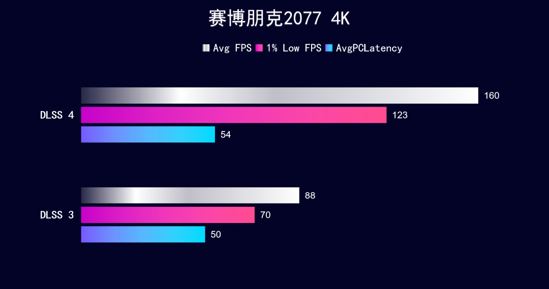 開啓DLSS 4,可使遊戲FPS提升至8倍左右,幀生成延遲降低84ms