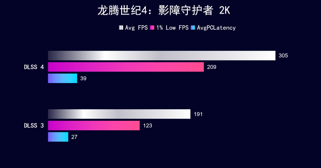 DLSS 性能模式+幀生成4x,4K平均FPS 221, 2K平均FPS 305左右