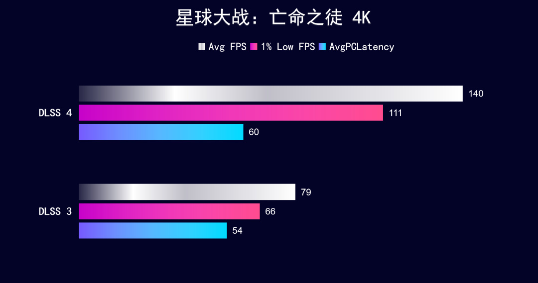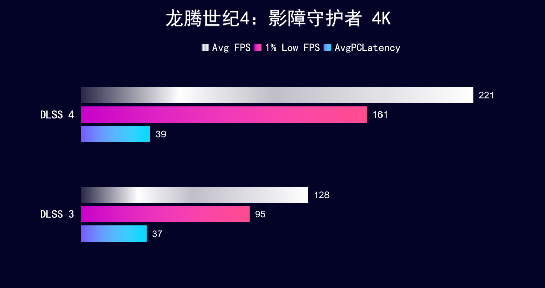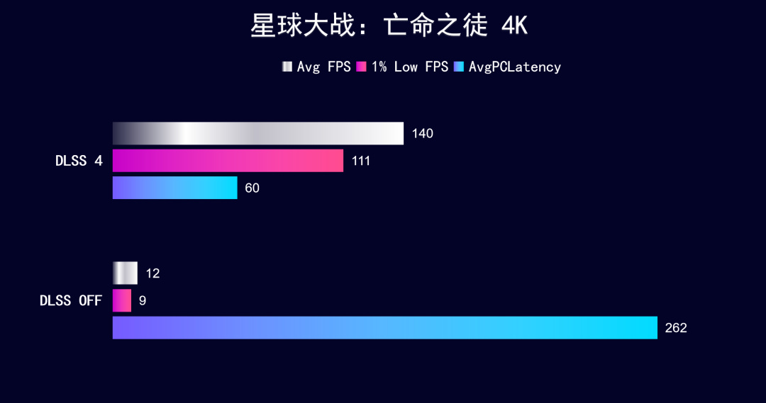 遊戲開啓DLSS 4時,最高可實現FPS幀數至高8倍的提升,DLSS 4的延遲要比DLSS 3更低