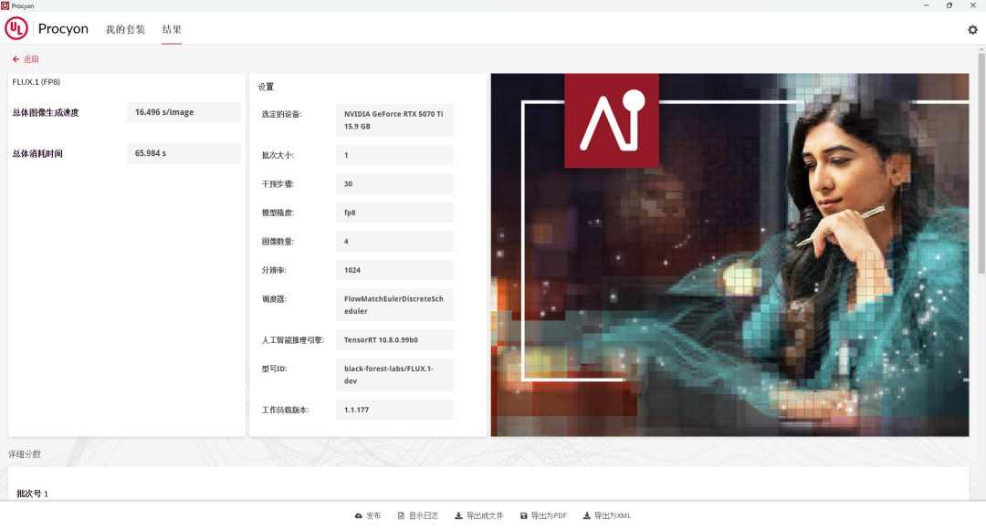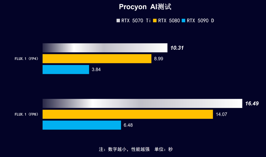 AI算力高達1406 AI TOPSs(RTX 4080 SUPER爲836) Procyon AI測試,FP4測試僅比5080 落後14%左右,FP8測試僅落後17%左右