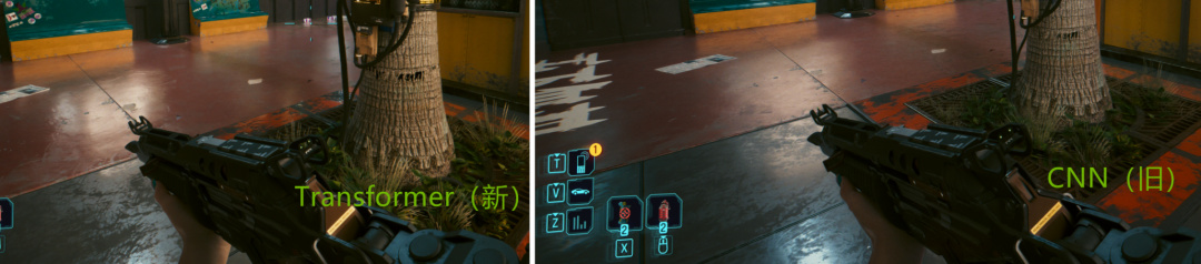 其次是改變最大的DLSS ,現在 DLSS 光線重建、DLSS 超分辨率和 DLAA 已經由 Transformer 模型提供驅動,這是圖形領域首個實時 Transformer 應用場景,也是自 2020 年 DLSS 2.0 發佈以來最重磅的升級。Transformer 模型與使用CNN傳統的卷積神經網絡對比,新模型採用雙倍於 CNN 模型的參數量來更深入地理解場景,所生成的像素具有更好的穩定性、更少的僞影、更豐富的運動細節,邊緣也更平滑.