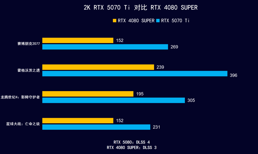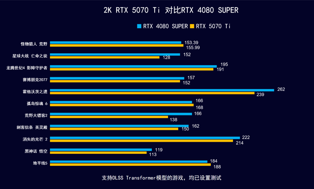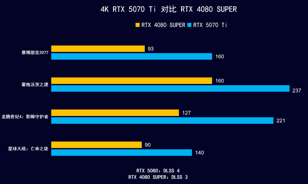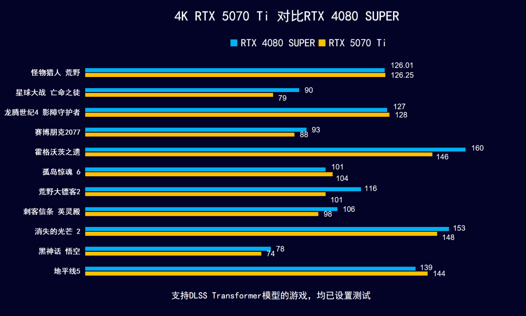 RTX 5070 Ti (DLSS 4)遊戲對比RTX 4080 SUPER(DLSS 3)