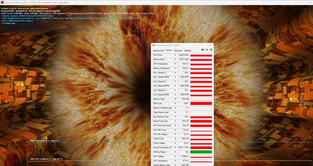 顯卡GPU核心64.6度左右,顯存60度左右。