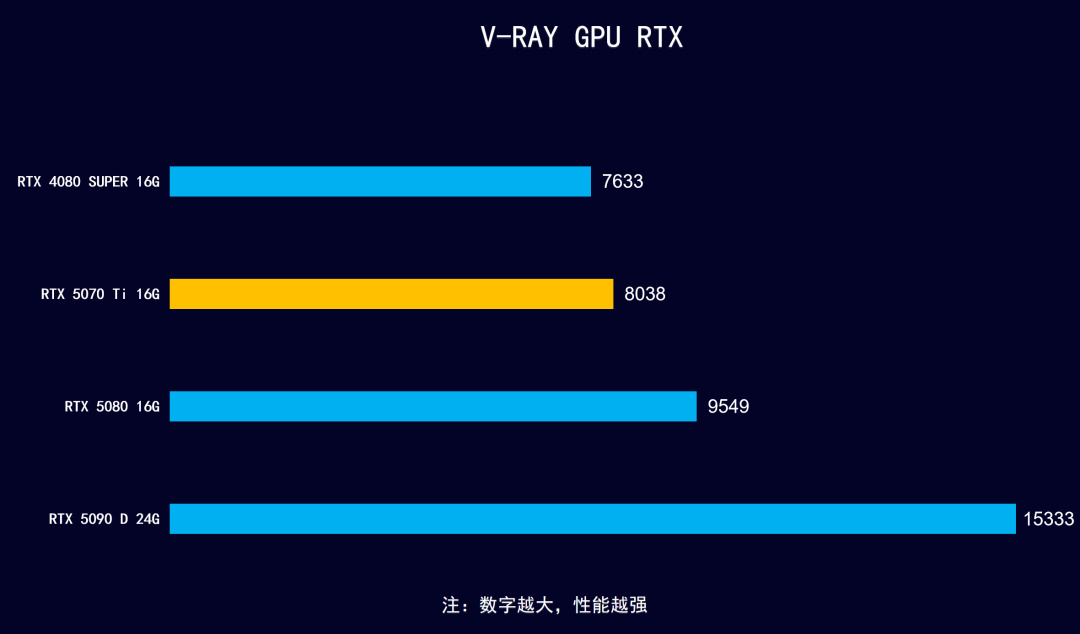 使用了最新的Blackwell架構,CUDA核心數量爲8960,採用第4代的RT Core且有效光線追蹤計算能力達到133 TFLOPS , 光追性能得到提升,採用第5代Tensor Cores, AI 算力高達1406 AI TOPSs(RTX 4080 SUPER爲836