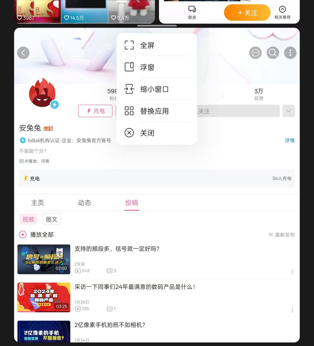 现在,用户使用主屏时,能够点击应用上方“…”标识,根据场景不同,一键选择分屏、浮窗、放大窗口、关闭窗口等功能。