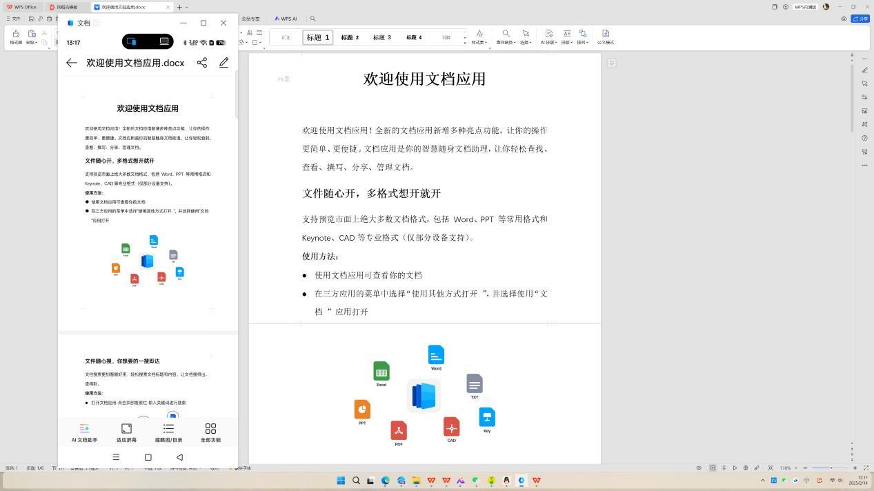 当Find N5与电脑处于同一网络环境下时,用户能够在电脑端直接访问、编辑手机上的文档内容,且保存后将自动同步刷新。