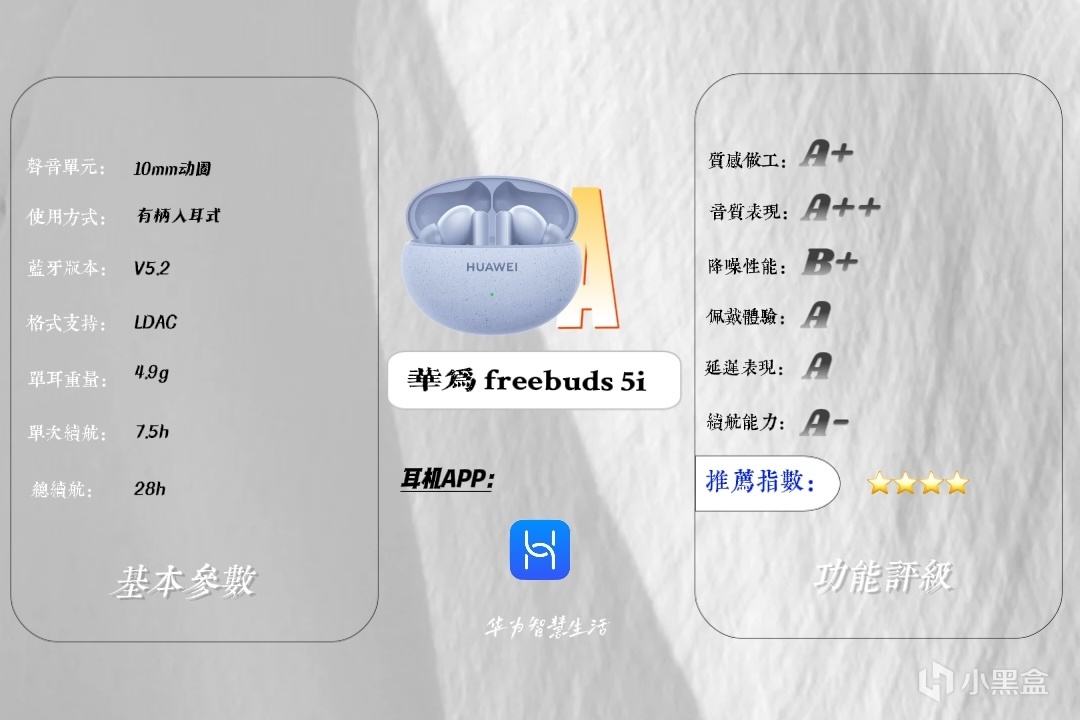 华为freebuds 5i:349rmb||综合评级:A||性价比:★★★★