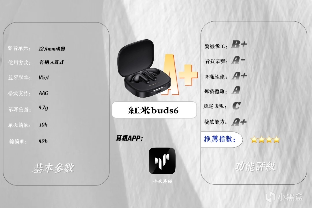 红米Buds6:199rmb||综合评级:A+||性价比:★★★★