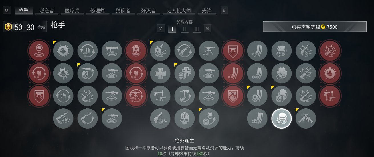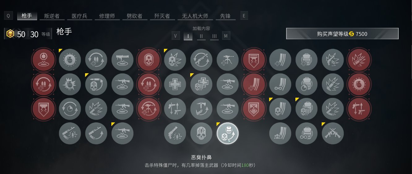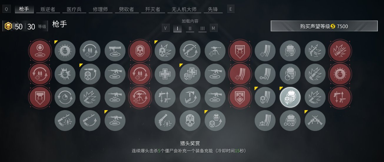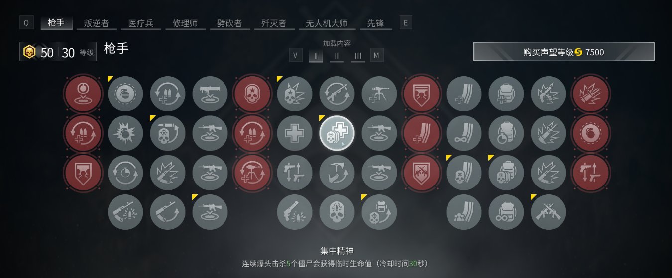 前線補給:這是槍手的核心技能之一,取決於你的爆頭命中率和對屍潮的熟悉程度。槍法影響不大,背板屍潮爆頭點位的熟練度纔是關鍵,想要玩好槍手,這個技能必點。
