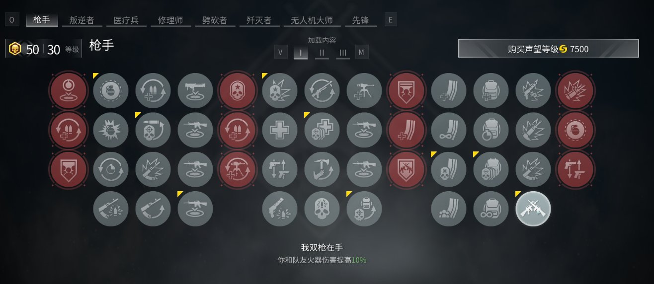 槍械狂熱:觸發條件較苛刻,收益一般。槍手的自保能力本就不強,點了反而更容易暴斃,不太推薦。