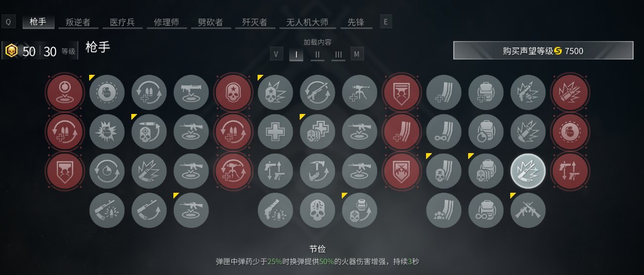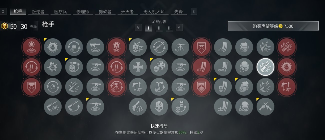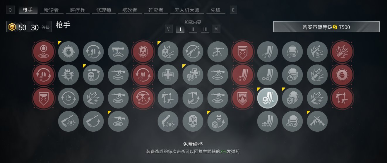 高效小憩:每隔7秒未使用的武器會自動換彈,實話說,作用不大。槍手主要用的武器換彈時間普遍不長,除非你玩輕機槍流派。