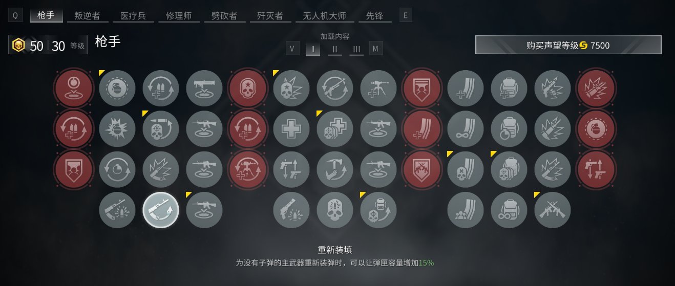 重新裝填:觸發門檻較高,收益一般,相比提升換彈速度的技能實用性較低。