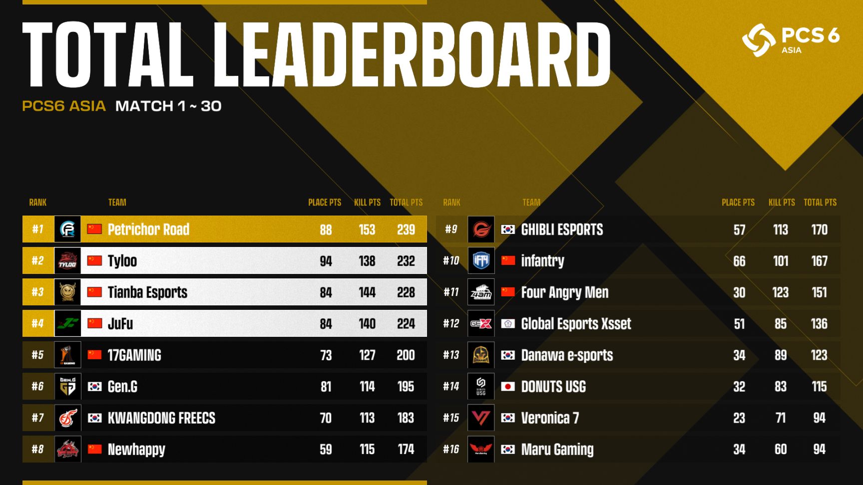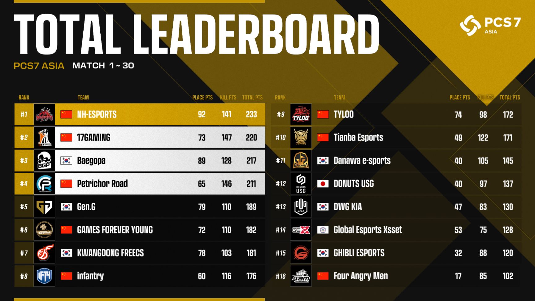 PNC全部队伍排名
