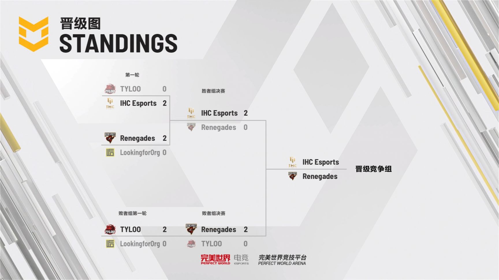 NH、17、TMA、TYLOO从小组赛进入胜者组第一轮,除17、TMA在胜者组前八名直接进入最后的总决赛,其余四支队伍都跌入败者组,连续在败者组和总决赛资格战失利后皆未能进入总决赛。
