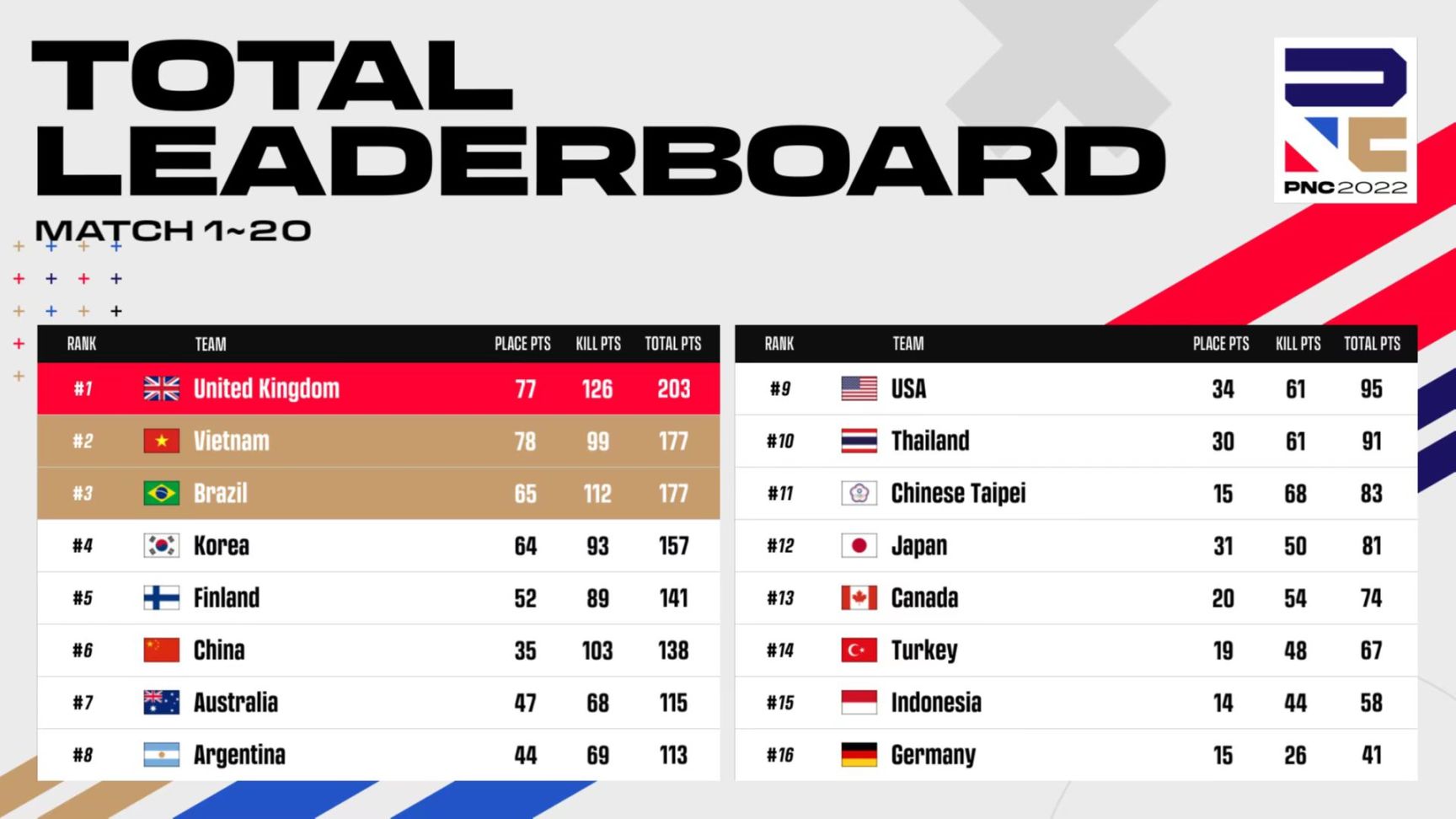 2022PNC,即全明星赛,共有16个国家或地区挑选四名选手在泰国曼谷进行为期4天每天5场共计20场比赛。