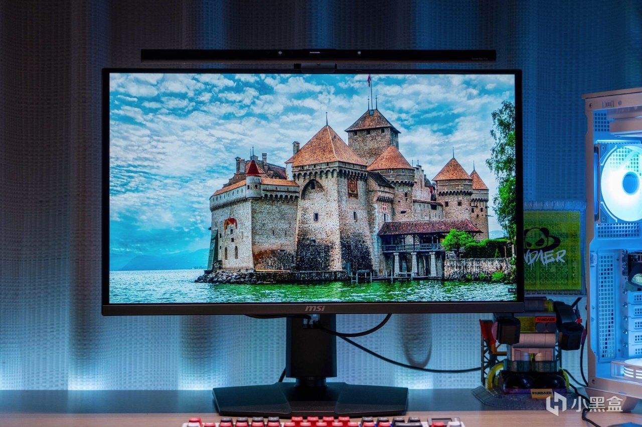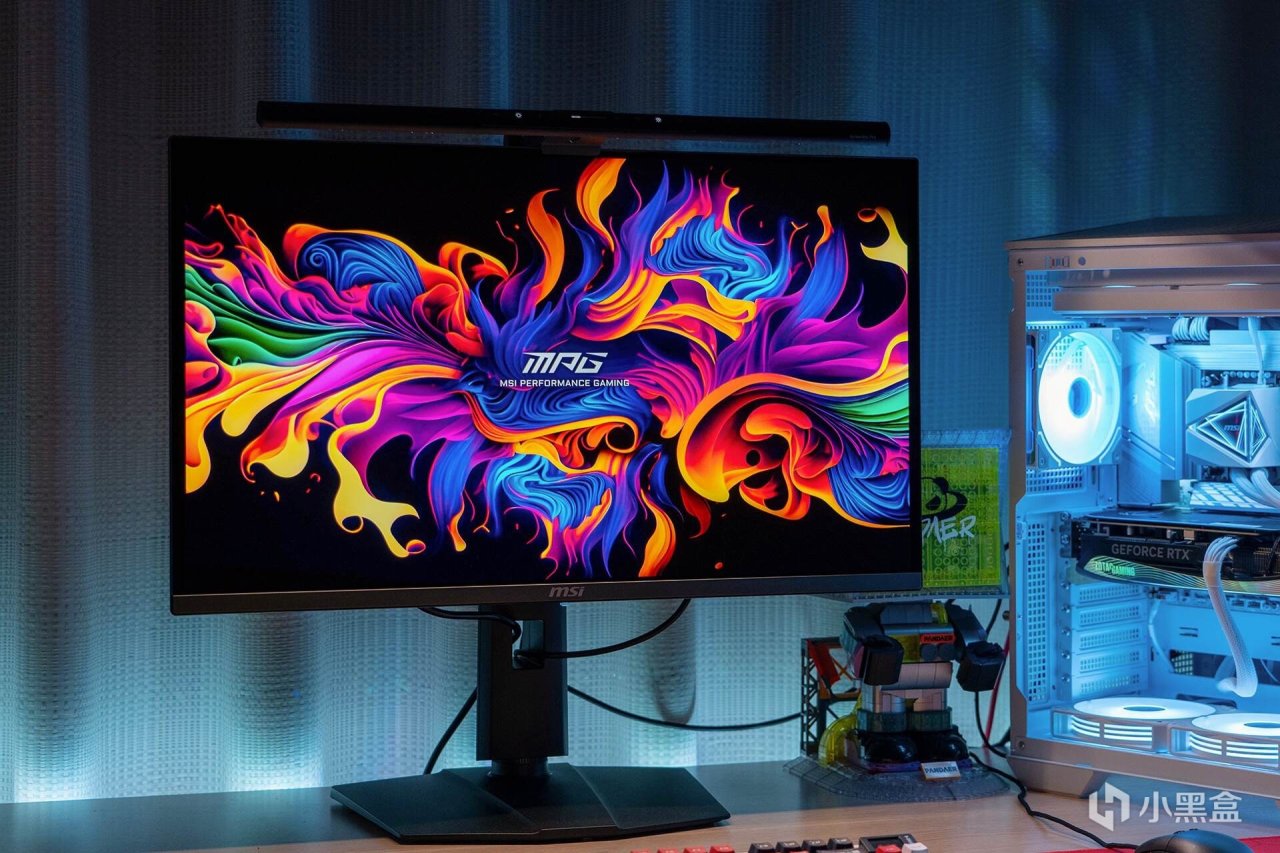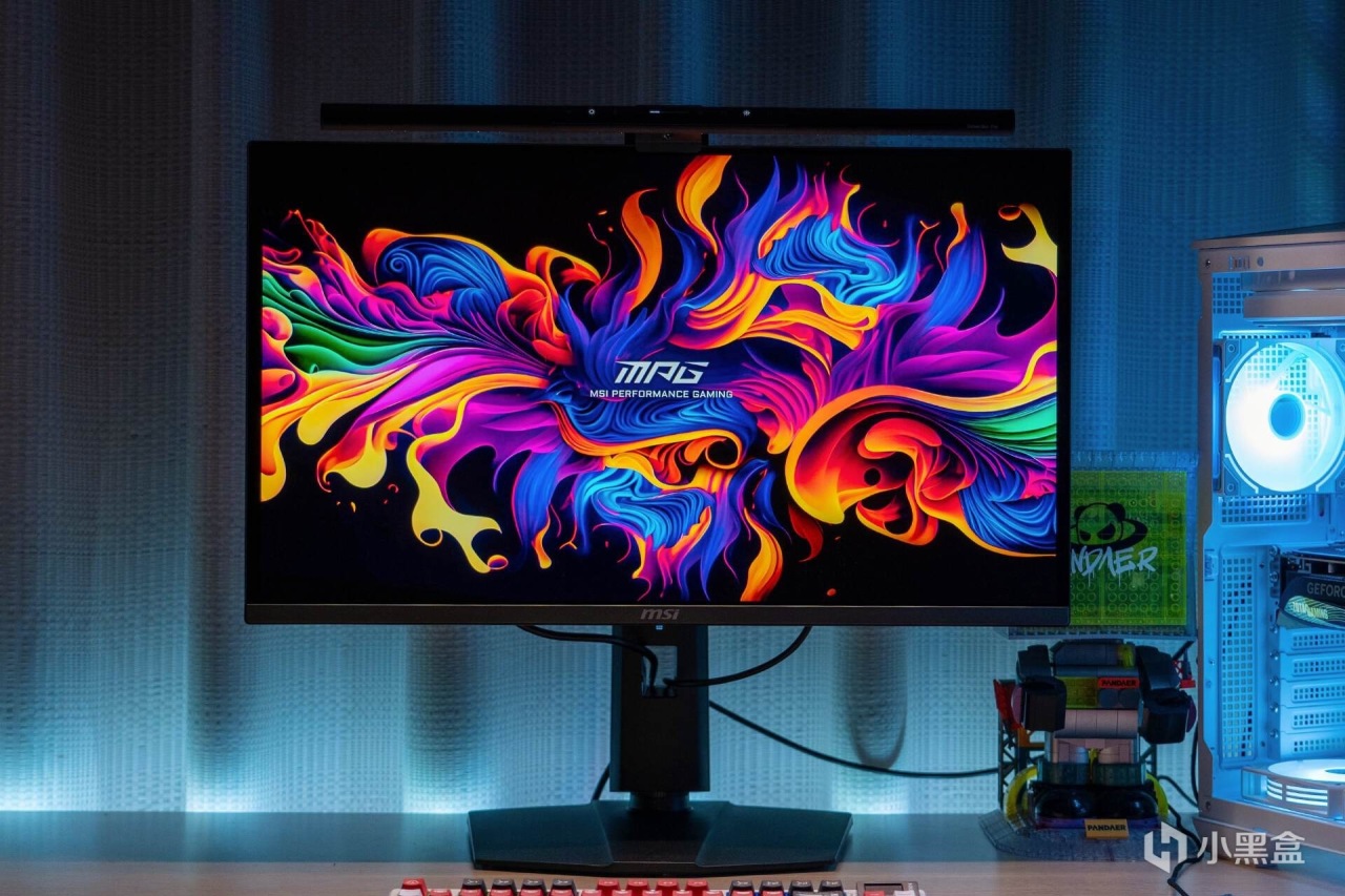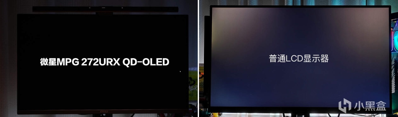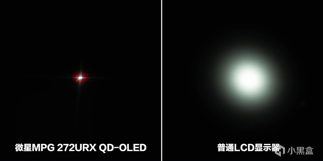 QD-OLED面板为有机发光二极管,不需要像传统LCD那样使用背光单元来驱动背光的开关,显示黑色场景时不需要亮起,屏幕所呈现的黑色就非常纯净。在纯黑背景下,微星MPG 272URX QD-OLED从各个角度看不到一丝漏光,就像关闭了显示器一样。