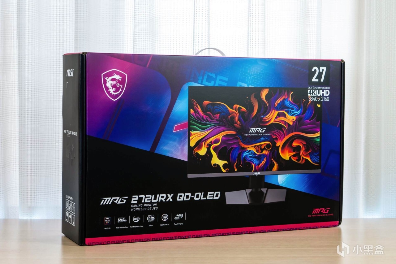 关于微星MPG 272URX QD-OLED显示器的体验就从开箱开始吧。之前开箱过321URX和322URX,再看微星MPG 272URX QD-OLED的外包装就非常熟悉了,依然是浓浓的科技感,只有几处微小的细节变化。