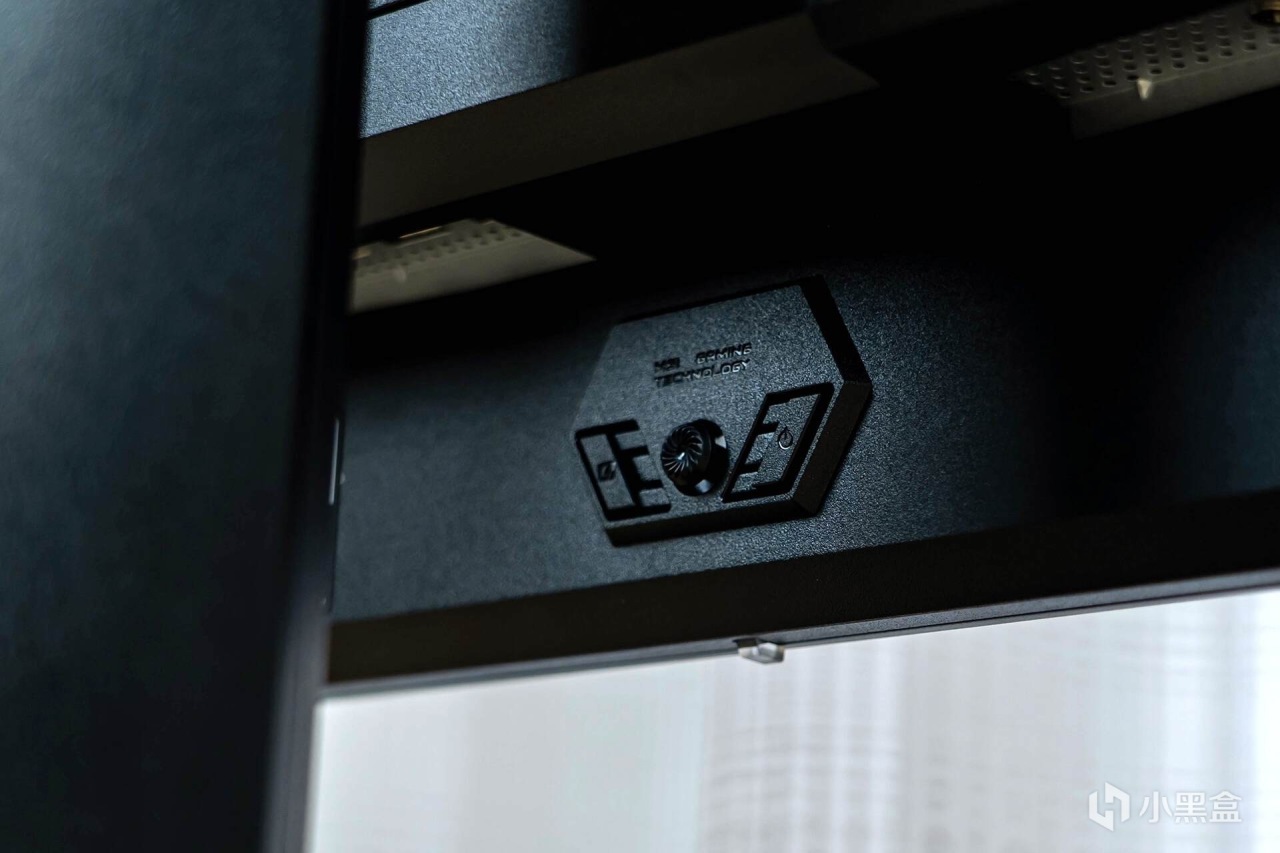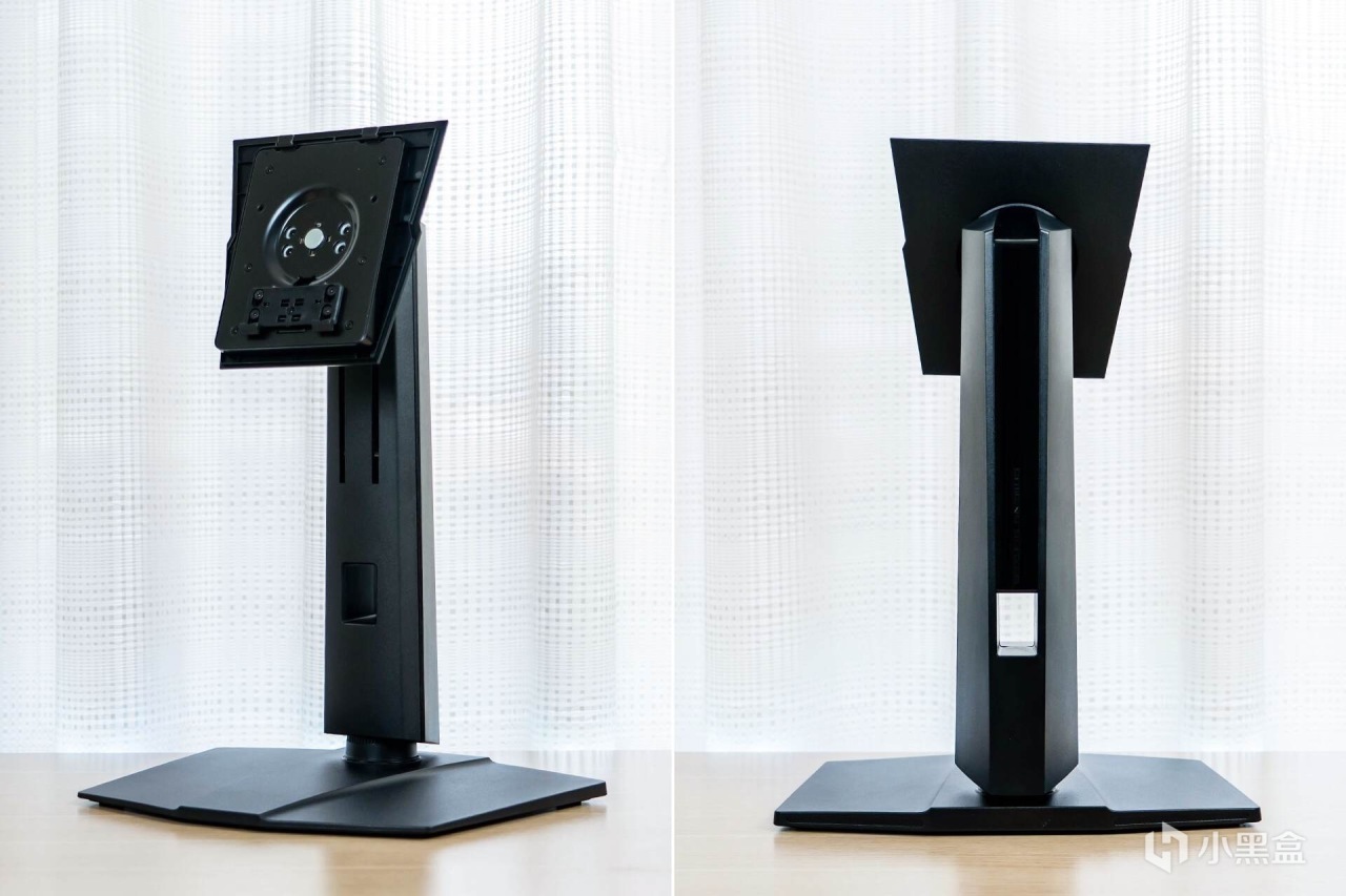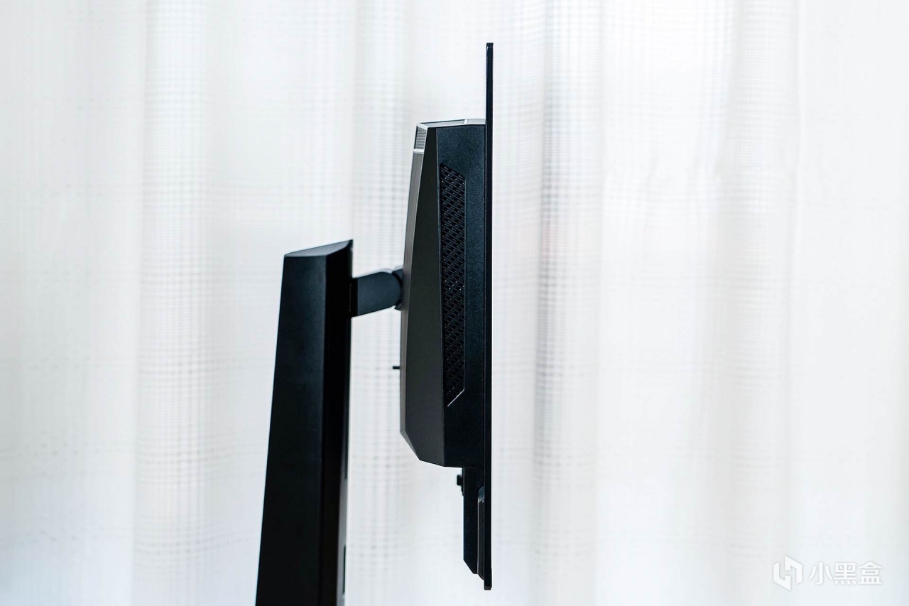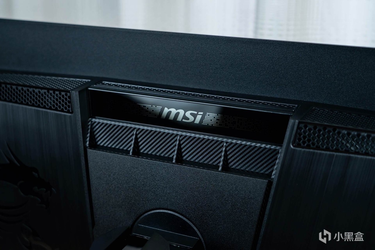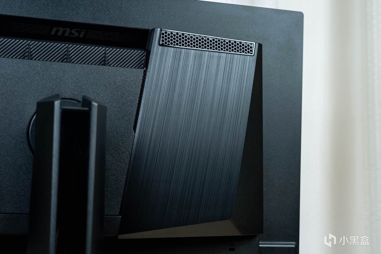 来到显示器的背部,霸气十足的“龙盾局”LOGO像一枚图腾一样盘踞在显示器的“肩膀”之上,辨识度很高;“肩膀”处是两块金属拉丝工艺的面板,质感十足,让显示器散发出一股凌厉的电竞气息。