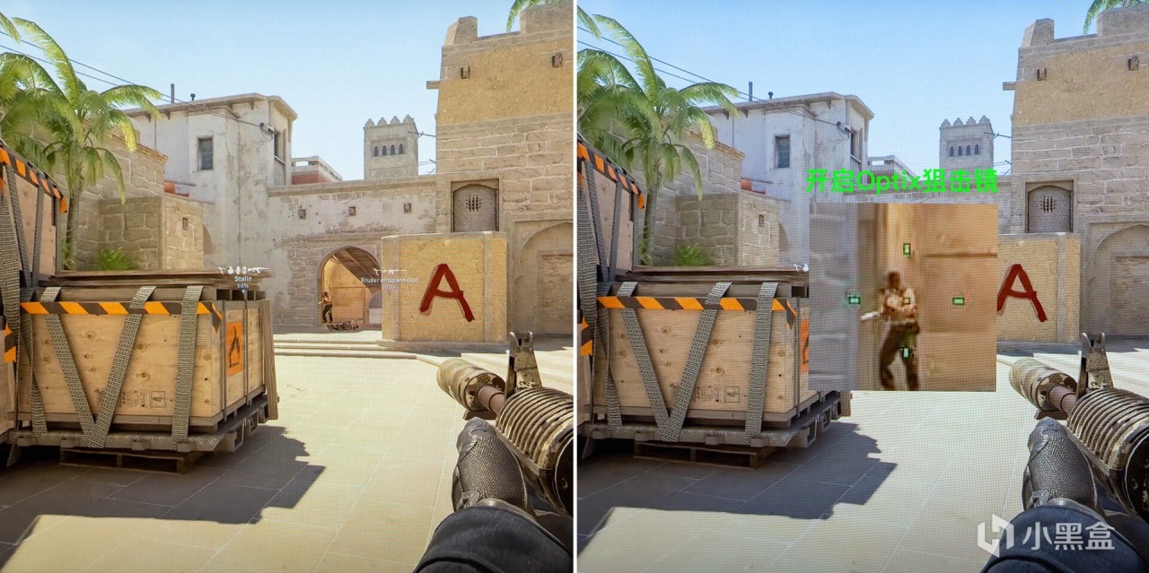 在智能准心的下面是Optix狙击镜功能,开启功能后,屏幕中心位置会有一个放大区域(放大倍数可调控),同样是射击类游戏的“利器”。