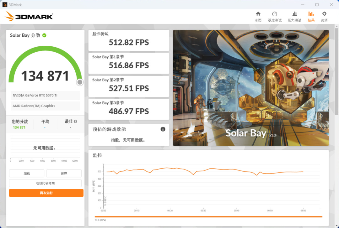 Solar Bay跨平臺光追測試,顯卡得分134871分;