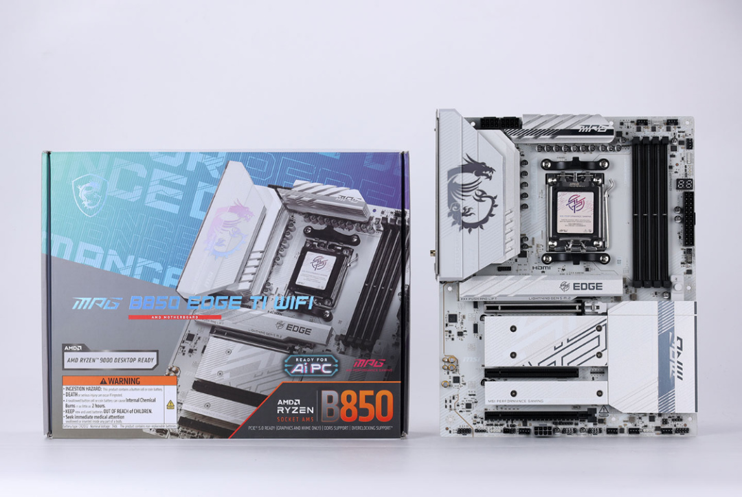 主板方面,銳龍7的良配不少,追求性價比的話剛發售並不久的B850M會是不錯的選擇。不過,如果跟我一樣有自己的堅持跟追求,那就直接上旗艦級別的B850主板吧,比如今兒這款微星MPG B850 EDGE TI WIFI主板。雖然小貴,但是用料跟顏值,在一衆B850中都是絕對出彩的存在。