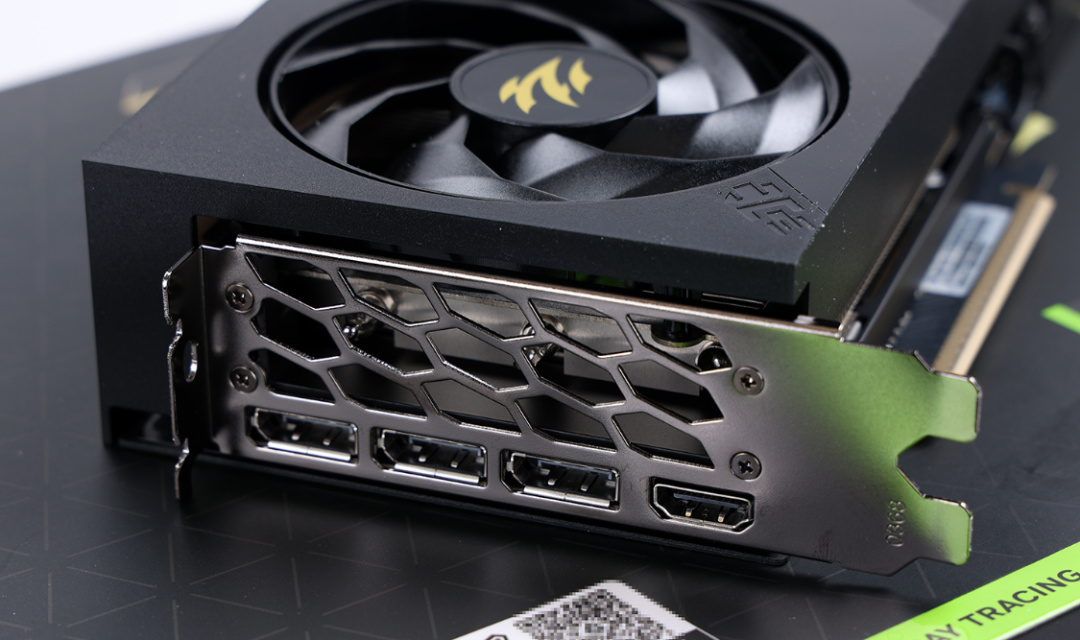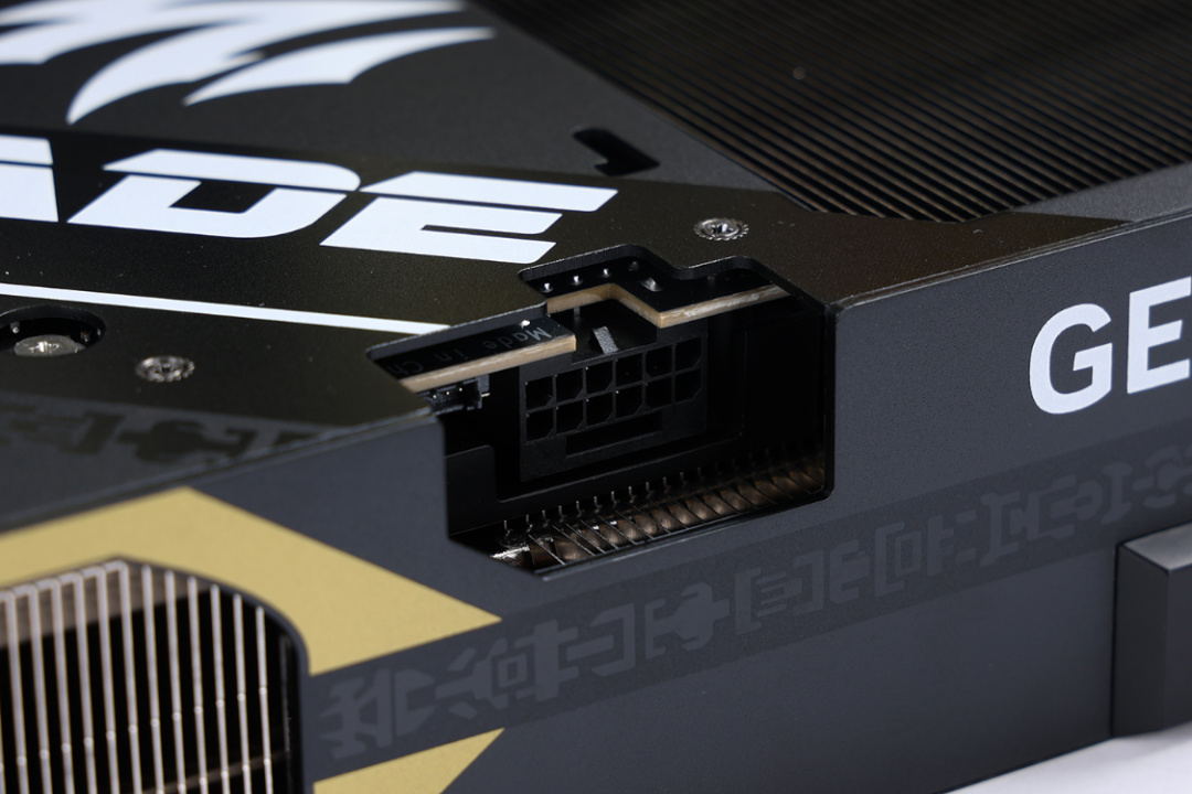 反扣設計的12V-2x6供電接口,位於顯卡側面中部,符合ATX3.1/PCI-E 5.0規範,支持最高450W的輸出功率。