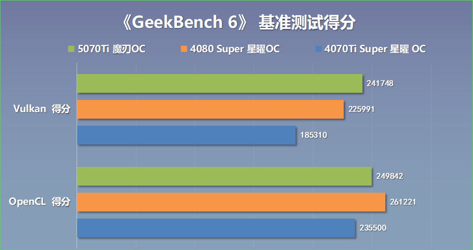 而在最新版的GeekBench 6顯卡測試中,在OpenCL測試中,顯卡得分249842分。在Vulkan測試中,顯卡得分241748分;