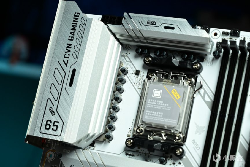 主板爲七彩虹CVN B650巡洋艦系列,主板整體爲純白色調,可惜的是塑料插件沒有做成白色。