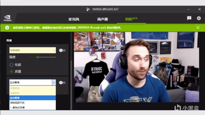 除此之外,顯卡生產力也是獲得了質的飛躍,RTX50系列顯卡可以利用NVIDIA Broadcast AI特效直播,實時渲染出一個虛擬直播間,屏蔽雜亂的真實直播間,打造更沉浸式的直播環境。