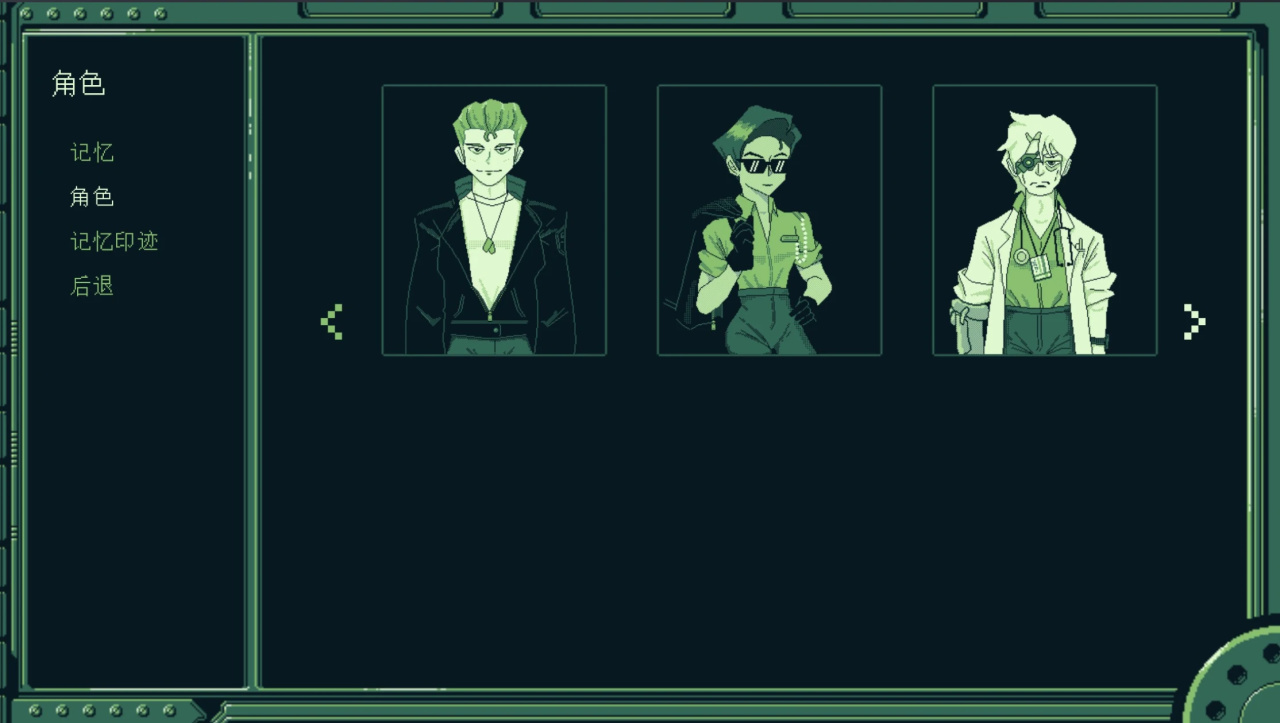 或许有人会觉得奇怪,你这个截图,怎么一会儿彩色一会儿绿色的。这是因为游戏制作组,分别给每个人物做了两套立绘,3种配色。