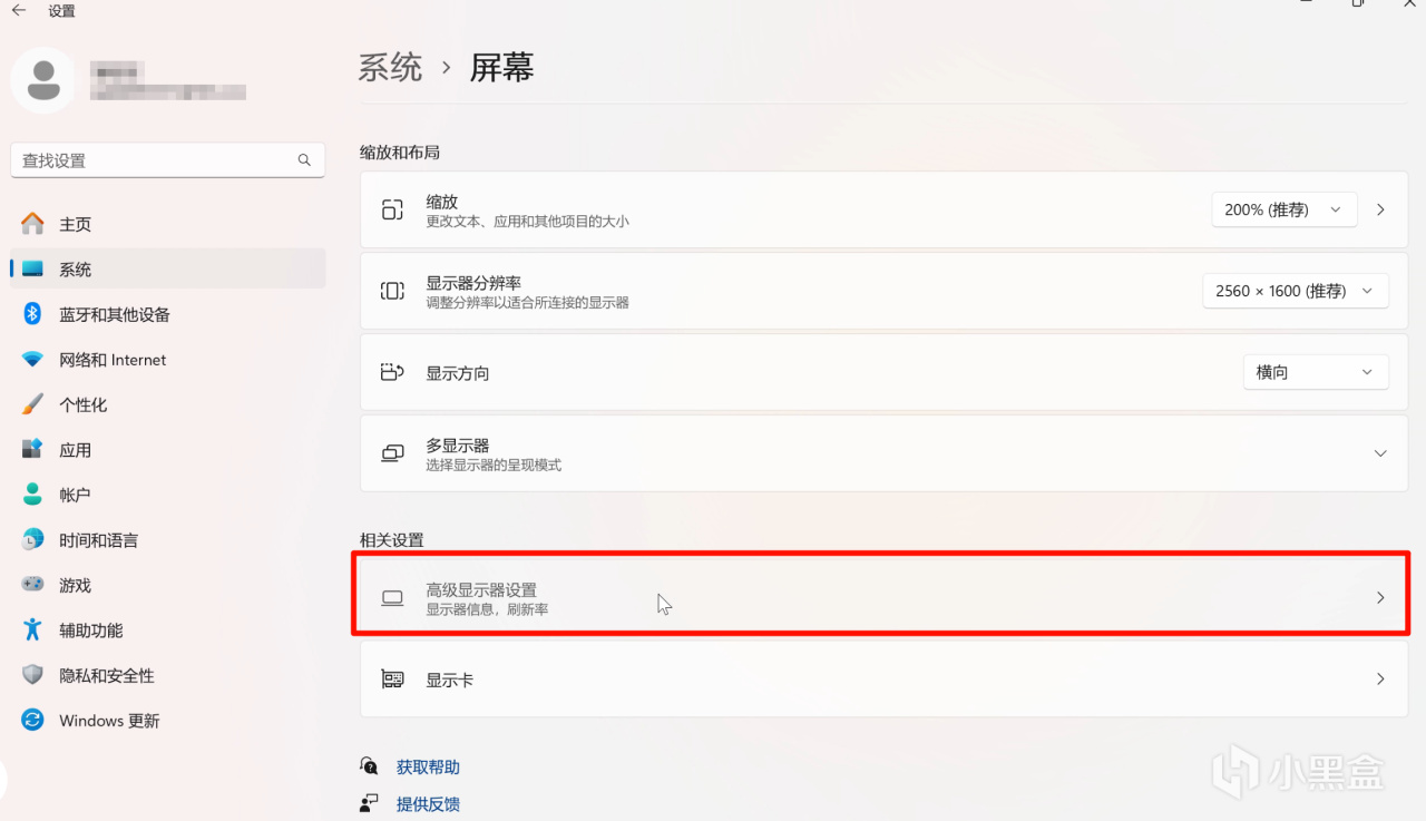 如果你的电脑有连接多块屏幕,比如外接了显示器,那么在高级显示器设置界面,选择一个显示器以查看或更改其设置,可以切换查看电脑正在使用的屏幕或显示器,