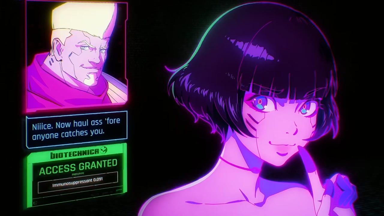 Sasha's only appearance is in the Cyberpunk: Edgerunners ending theme "Let You Down" music video, which acts as a standalone prequel to the show.