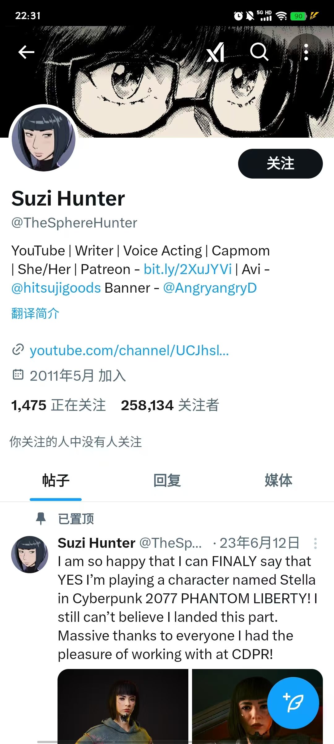 注:Suzi Hunter是X上一名作家兼配音演员的网名,不知道是不是实名上网。她在往日之影委托“等待道杰”中为雇主史黛拉配音,貌似脸模也是她。账号是@TheSphereHunter。