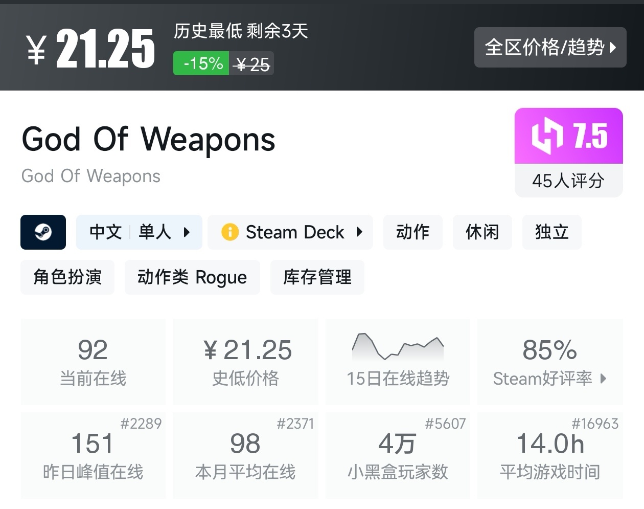 大家好,没错,又又又是我,那个肉鸽游戏的爱好者,最近我发现,Steam打折的肉鸽游戏是相当多,昨天有加入折扣的肉鸽游戏,今天一样有,所以说,我想为各位盒友进行一个汇总,希望我的汇总,能够帮助各位盒友挑选心仪的游戏。