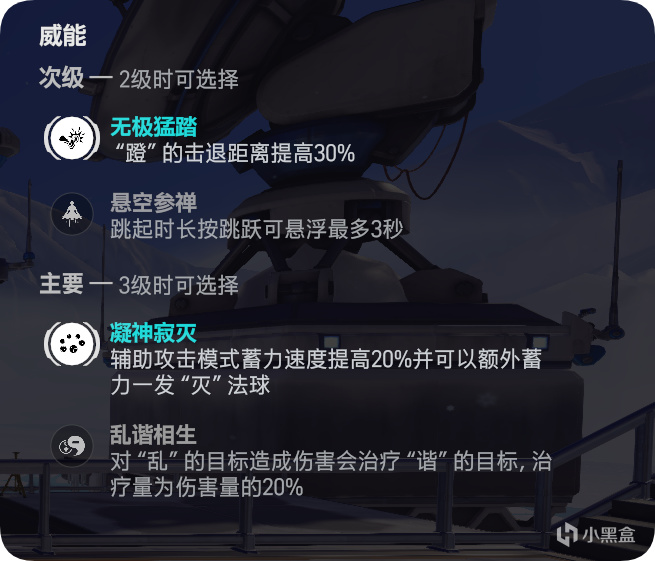 次級威能:無極猛踏:狗位/機動T來切你一腳踢開,拉開安全距離的同時,強制位移也會讓他的技能命中容易落空。