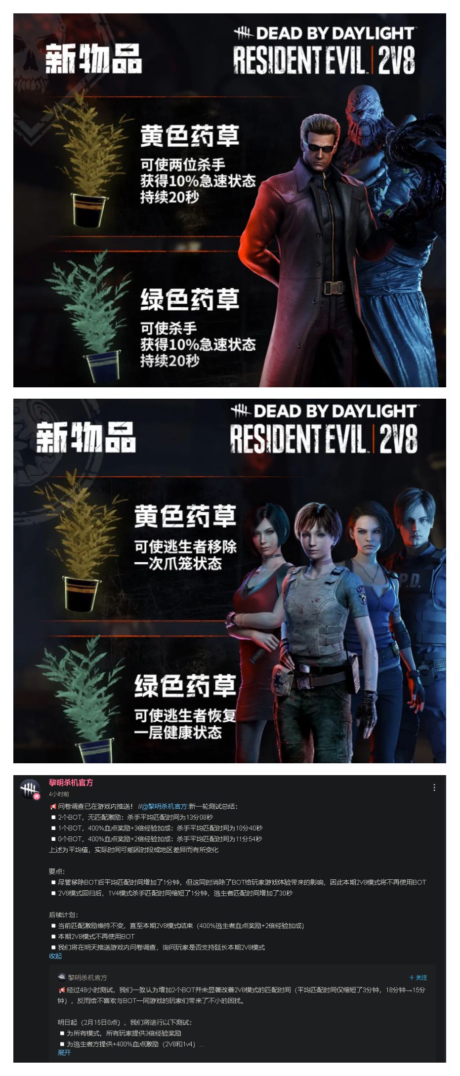 2.軍團加入2v8,強度實在是有點高,拿刀太快了,只要雙排的人裏軍團會玩,基本剩兩臺機人類就基本5-6人開始面對慢性死亡對局。
