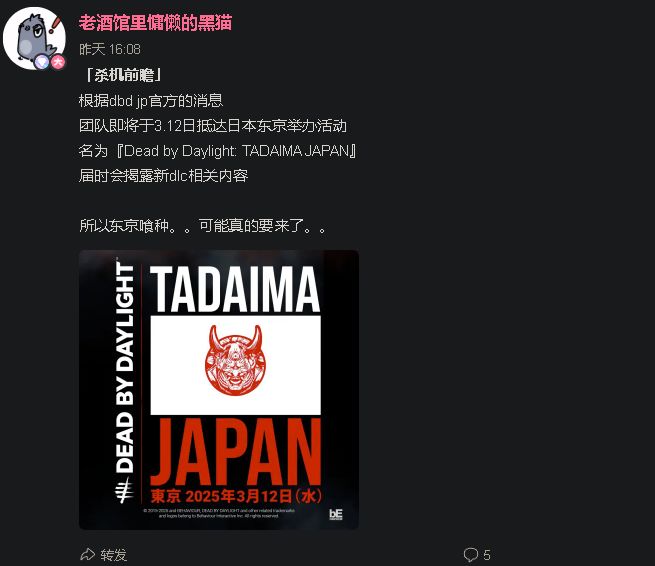 自幾年前巴西爆料老哥被開除後殺機消息一直漏的比較少比較晚,本來感覺不太可能的東京喰種貌似可信度又高了一點,經常關注消息的應該都知道殺機新內容現在固定以小會談的形式放出,能讓zzz直接去日本當地辦活動,應該聯動的IP還是有分量的。