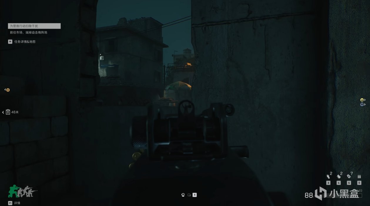 固定线路,沿着街道进行。但由于是夜晚,视野可能会受限!我们四个人只需要全部走街道的最左边的建筑物就行,一路打下去。左边一路上临着街边的建筑都是可以直接进入的,四个人慢慢推进就行!
