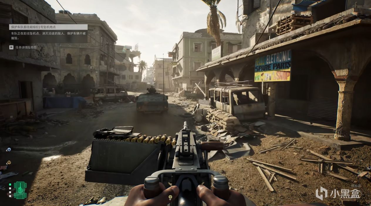 通过机枪扫射,快速地清理敌人,但首先先攻击RPG和敌方的装甲车,不及时清理,你的车就会被打爆开!