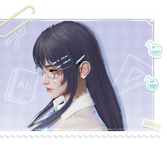 霧霾藍灰色的長髮被少女別至耳後,露出閃閃發亮的星鑽耳飾,銀色鏡框上的吊墜襯托她知性而精緻的氣質。