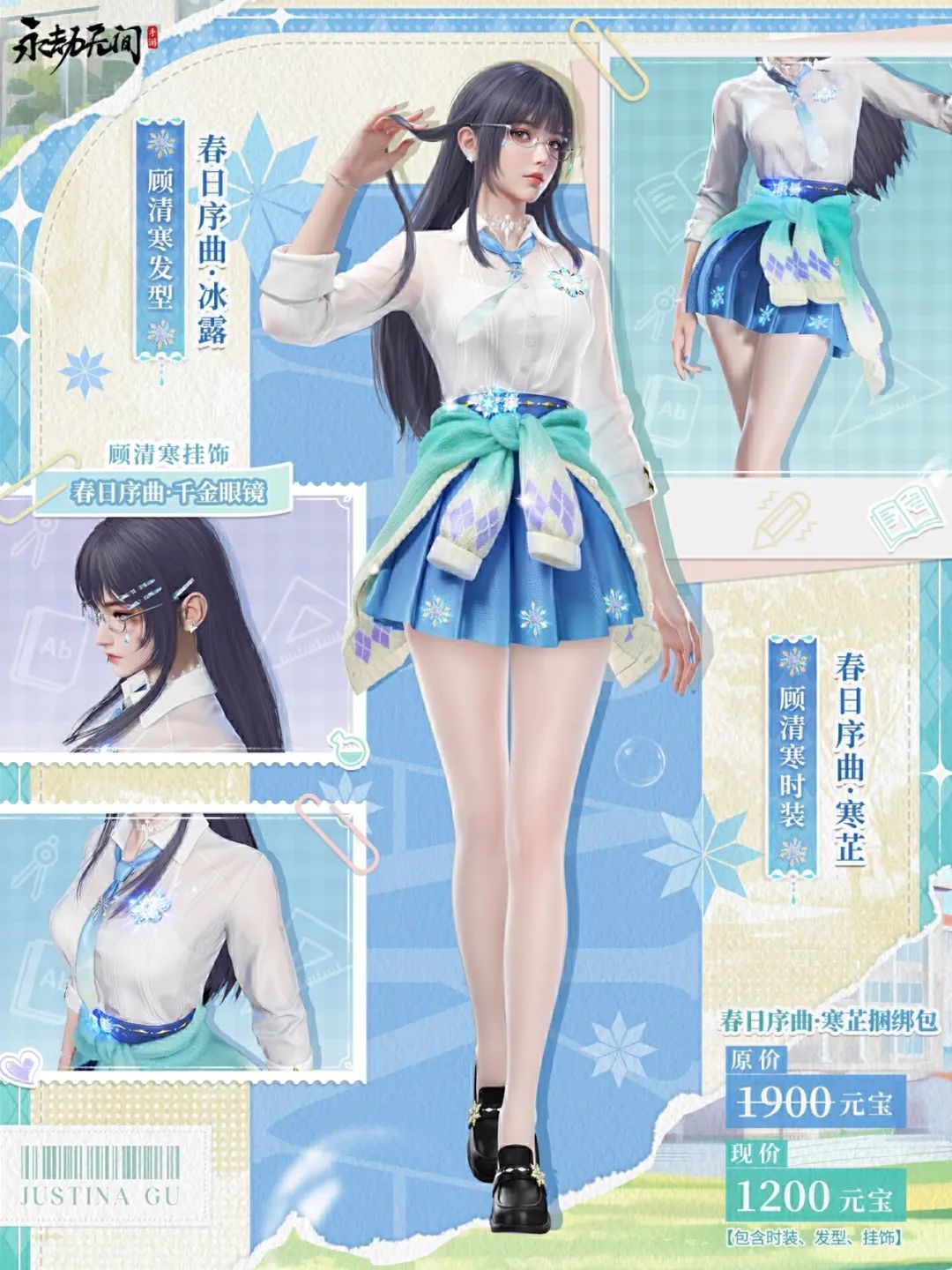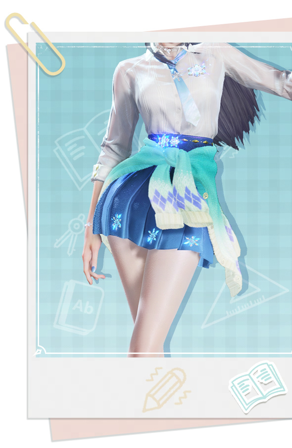 也許是天氣漸暖,少女將薄荷色的毛衣脫下系在腰間,深藍百褶裙上的雪花紋樣閃閃發亮,予人陣陣清涼之感~
